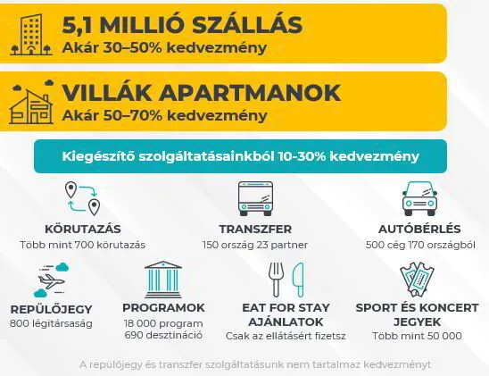 Foglalj 20–60%-kal olcsóbban a világ legnagyobb adatbázisából.
